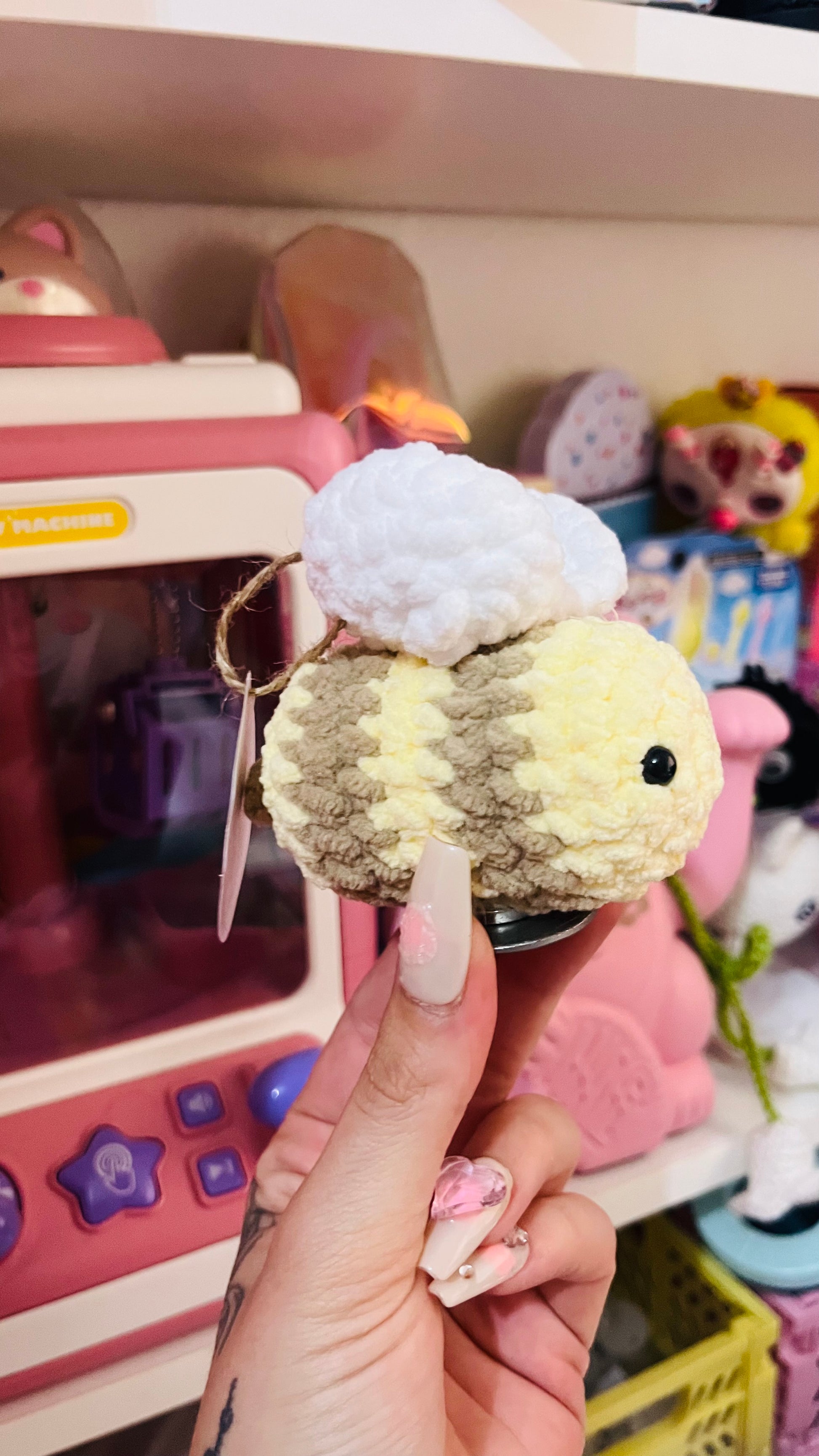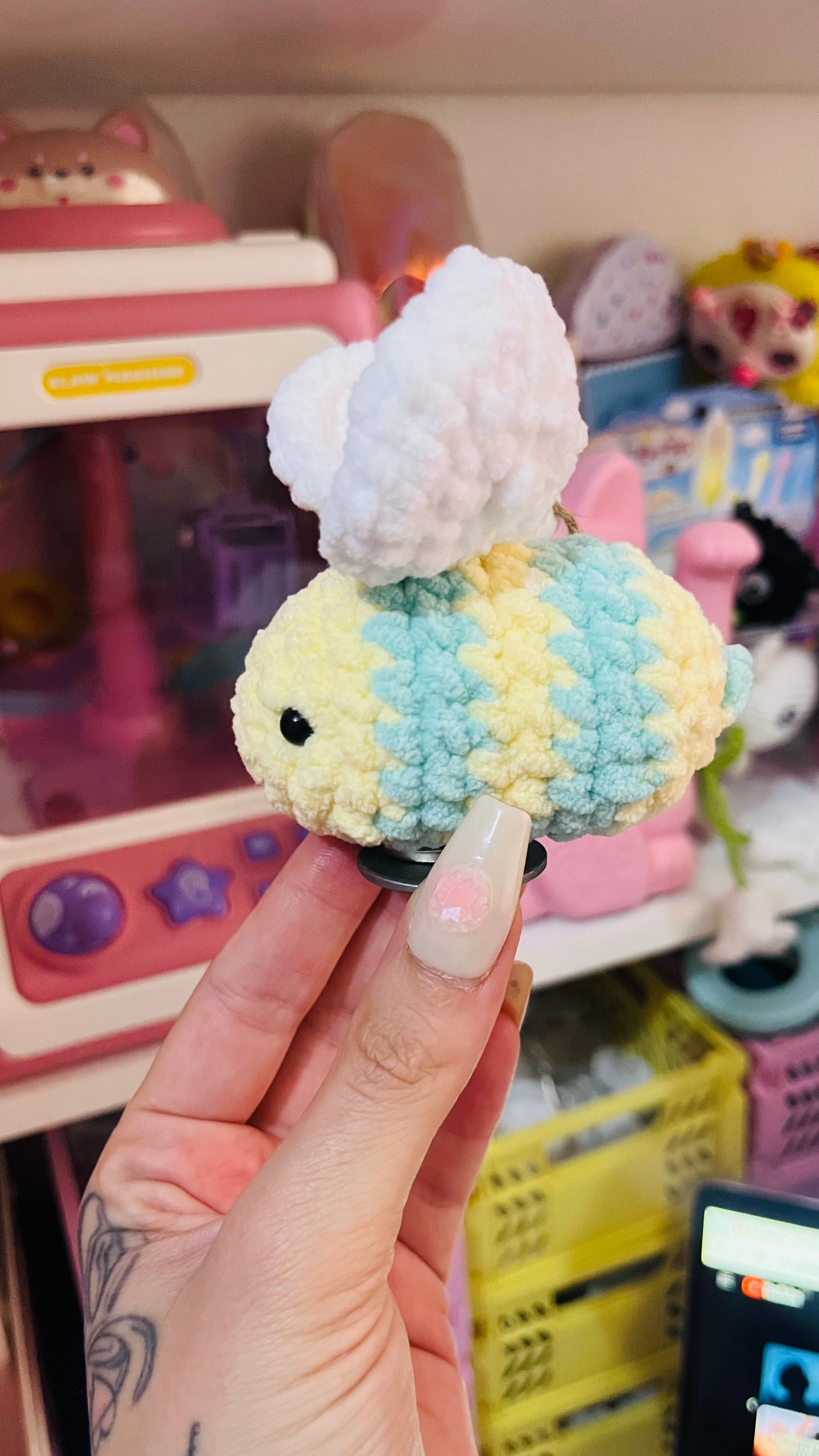 abeja de amigurumi con imán. Puedes llevarla en el hombro🤗