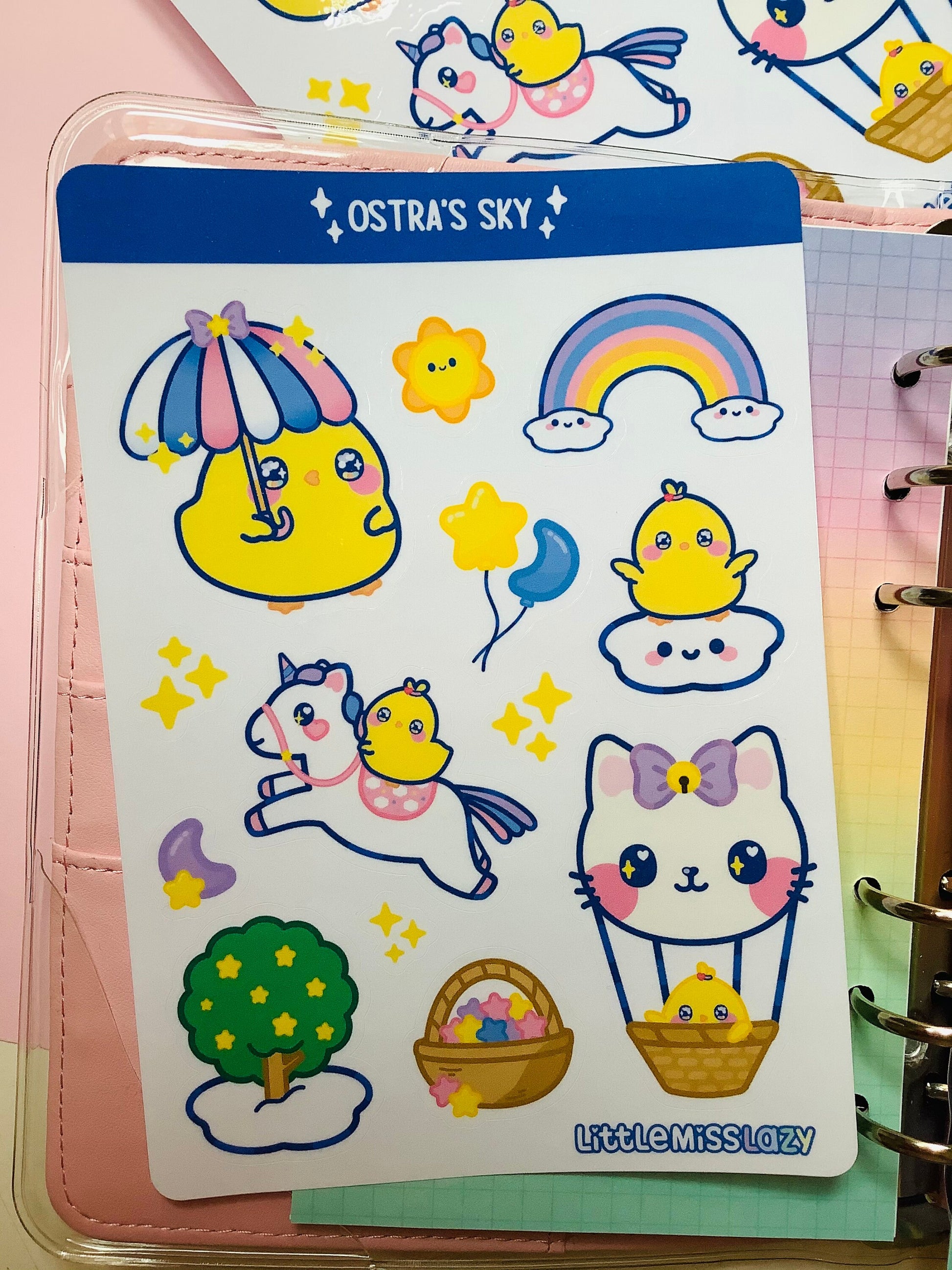 Hoja de pegatinas del adorable pollito Ostra. Laminado brillante, para que sean más duraderas. Ideales para agenda o bullet journal.