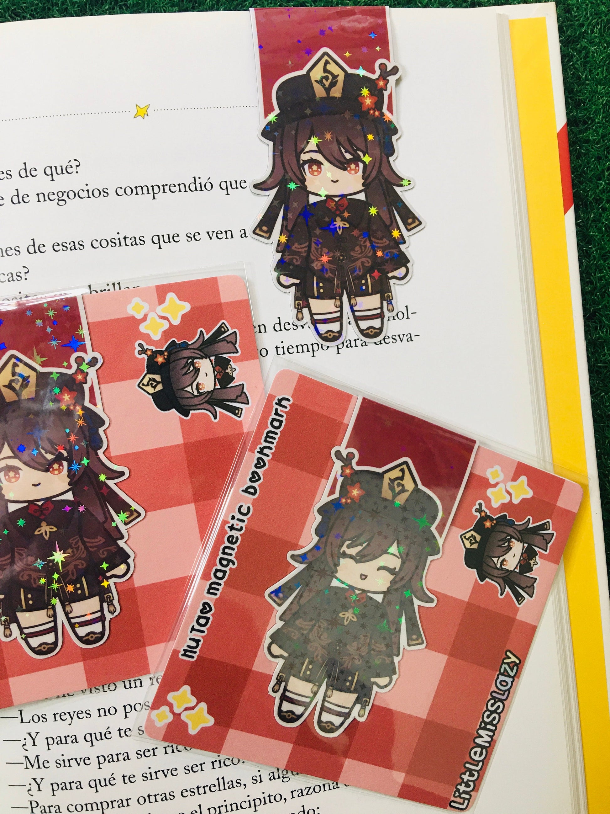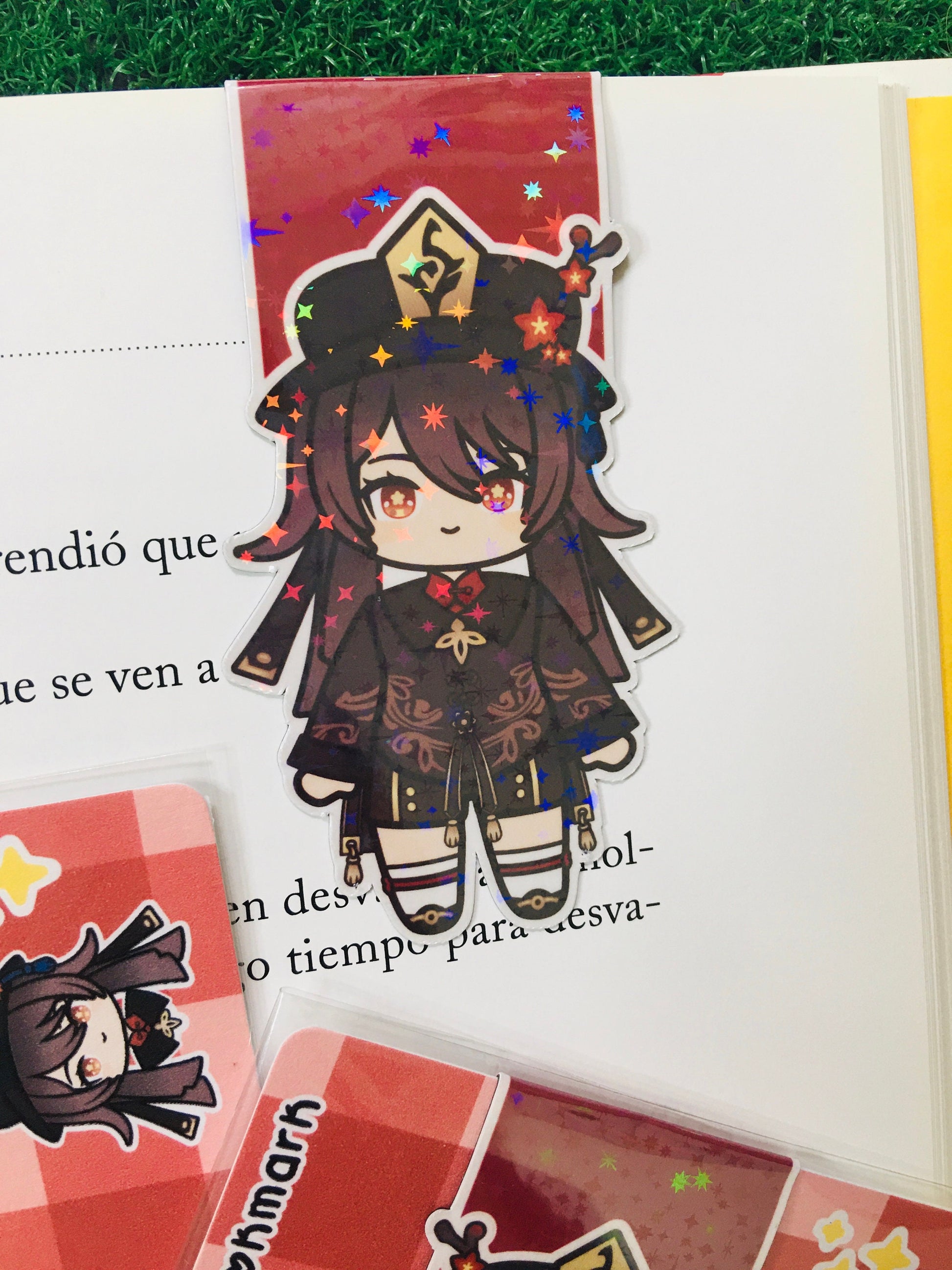 Marcapáginas magnético con brillo holográfico de Hu Tao (Genshin Impact).