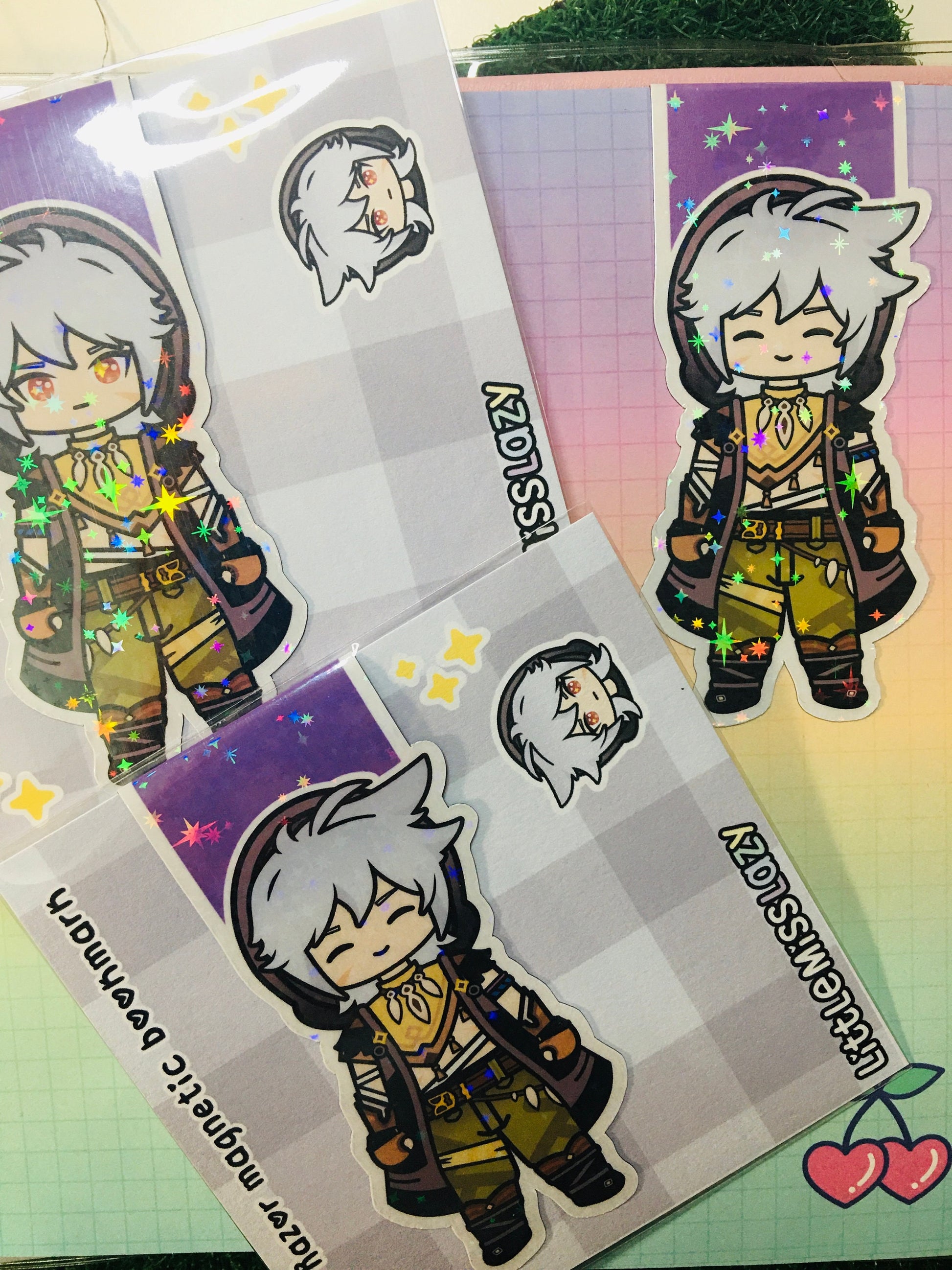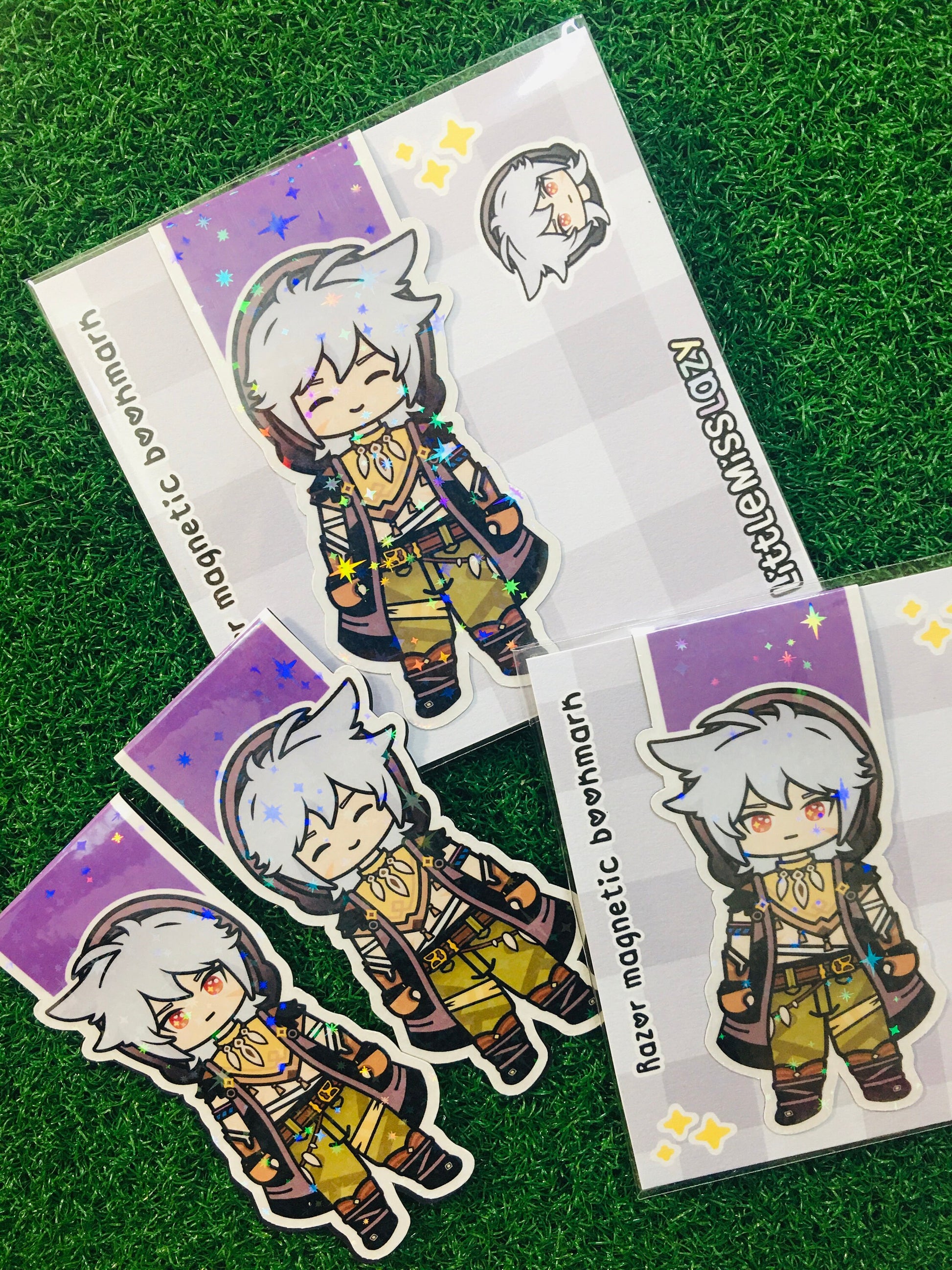 Marcapáginas magnético con brillo holográfico de Razor (Genshin Impact).