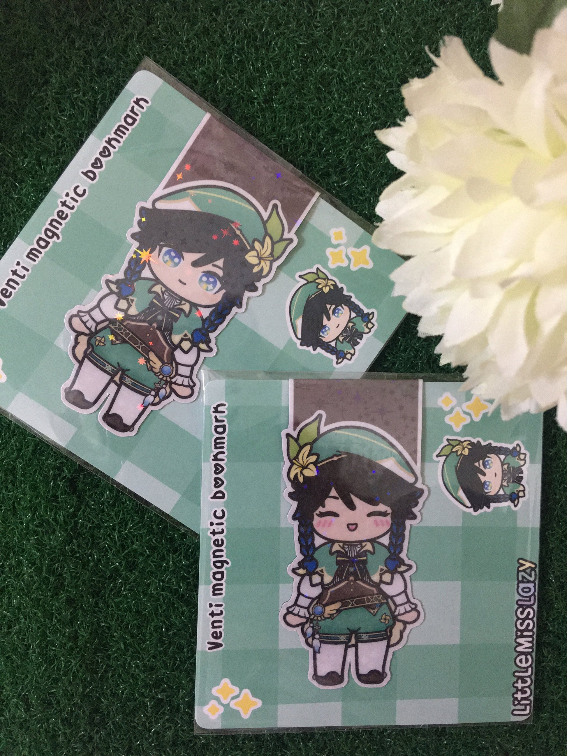 Marcapáginas magnético con brillo holográfico de Venti (Genshin Impact).