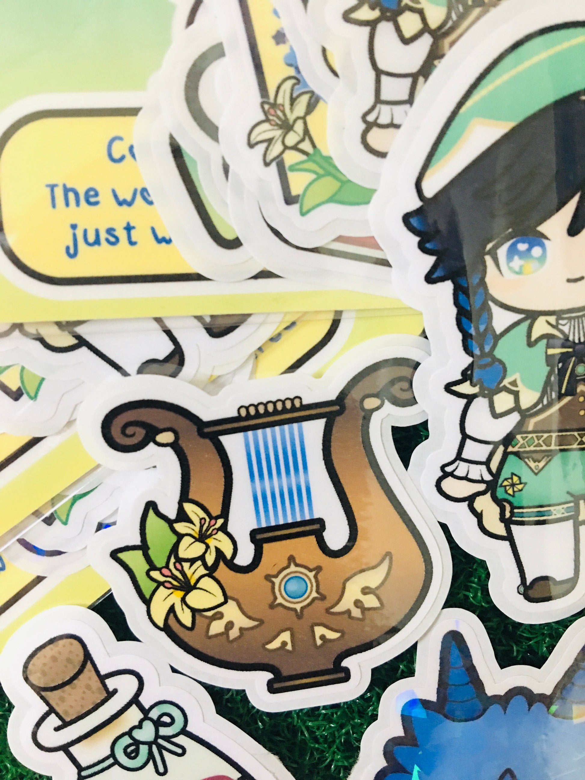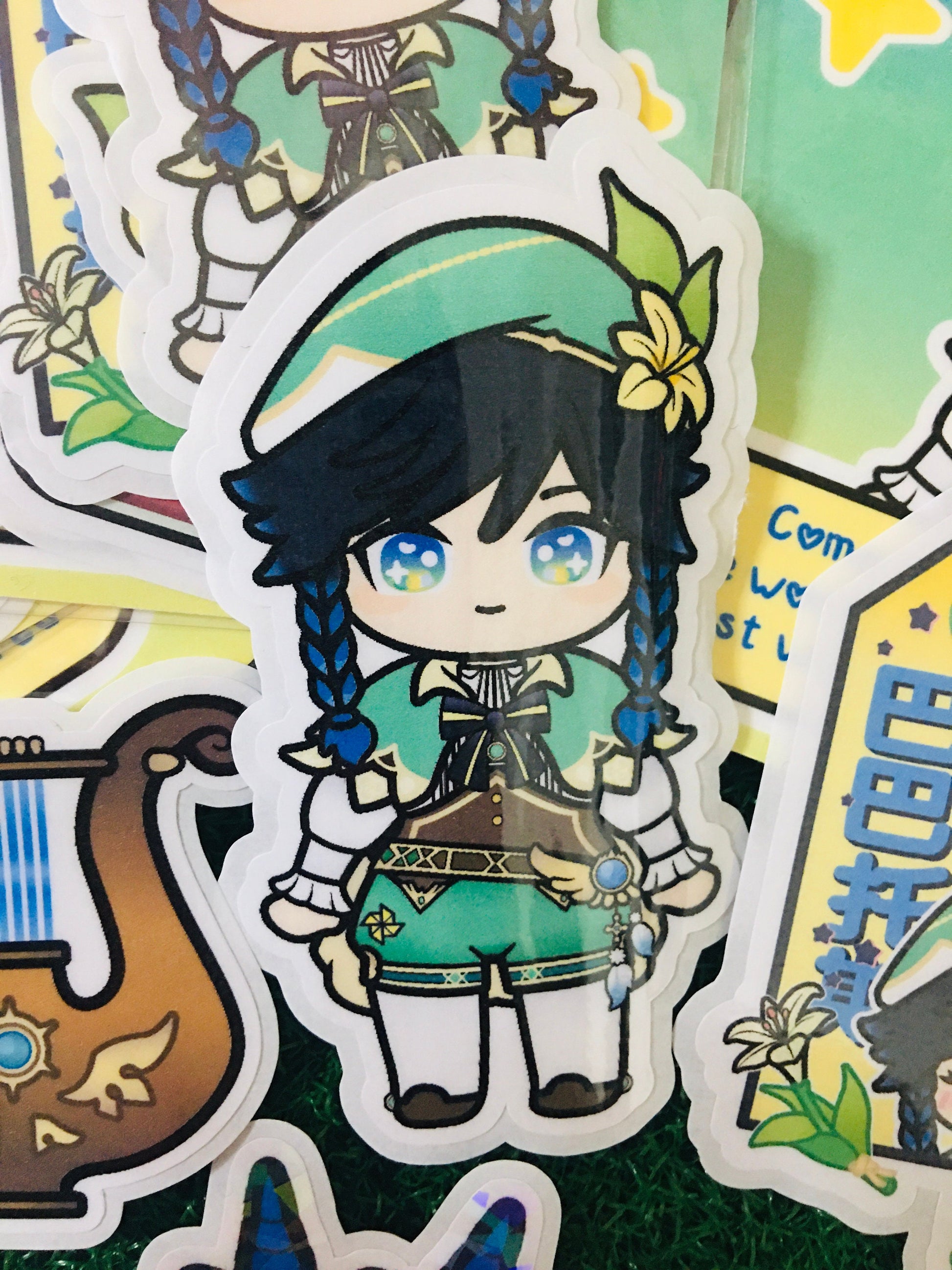 Pack de 6 pegatinas de Venti (Genshin impact). Incluye lámina de 9 x 9 cm.
